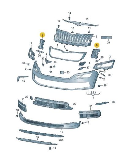 Front bumper grille support bracket Skoda Kodiaq