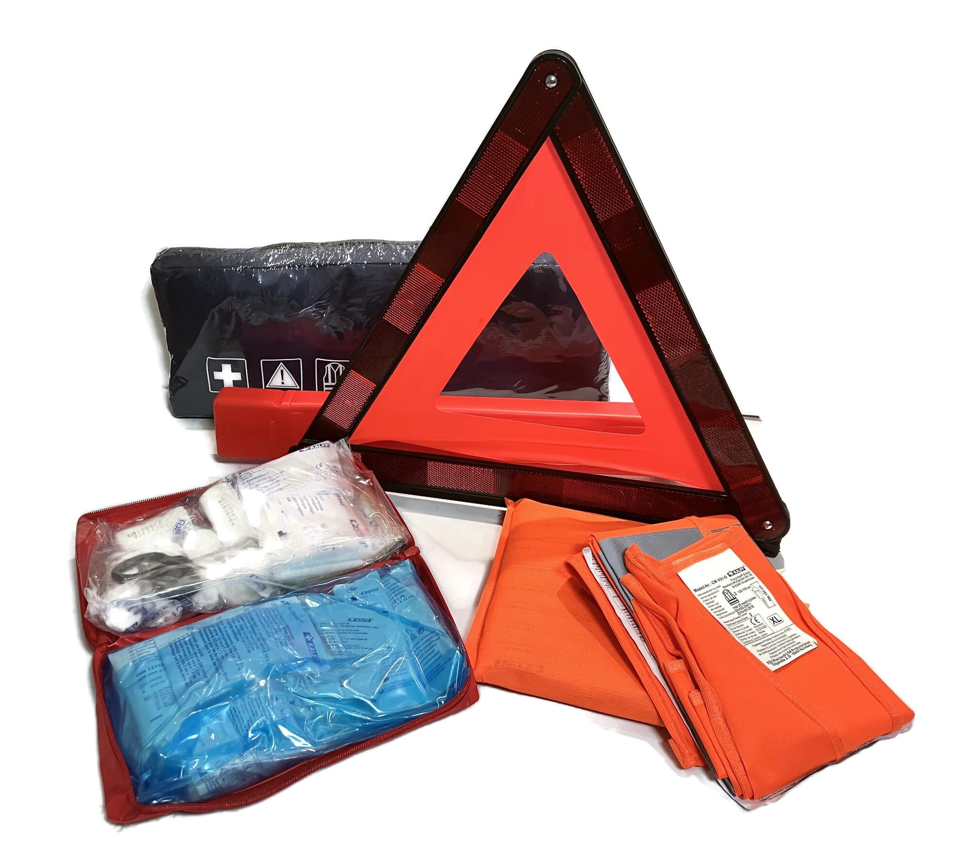 Car first aid kit emergency first aid kit, triangle, reflective vest