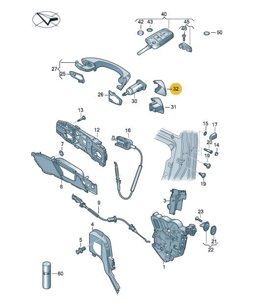 Left front door handle cover cap VW SEAT SKODA AUDI