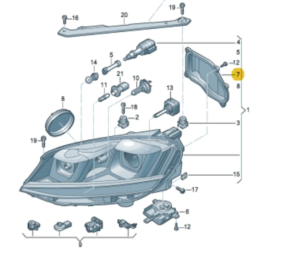 Left front headlamp cover cap VW Golf VII 7 2013-2016