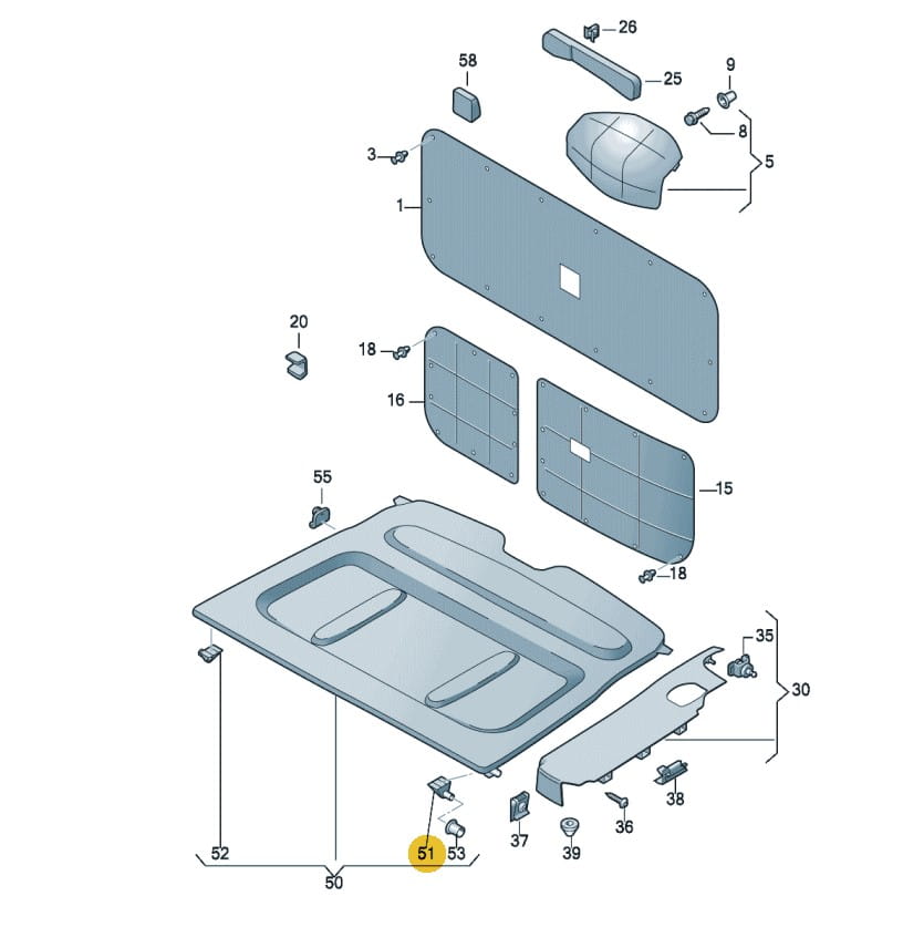 Left pad mounting luggage cover compartment VW Caddy 2004-2020 2K0863533