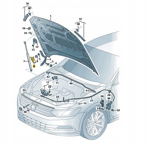 Right front bonnet hinge guard cover VW Passat B8 2015-24 3G0823316C