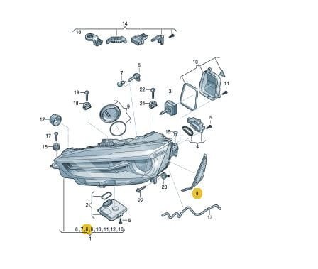 Uszczelka narożnika lampy przedniej reflektora Audi A5 2017-