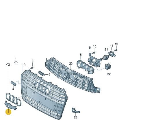 Wspornik uchwyt mocowanie podpora atrapy grilla PRAWY | Audi A6 C8 2019-2024 4K0807078