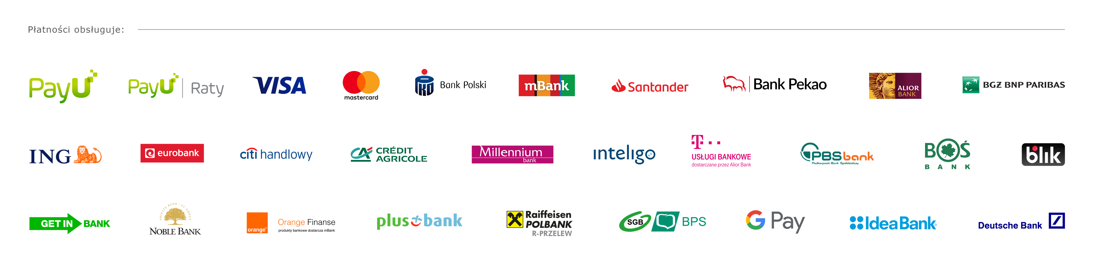 Lista akceptowany płatności w naszym sklepie: