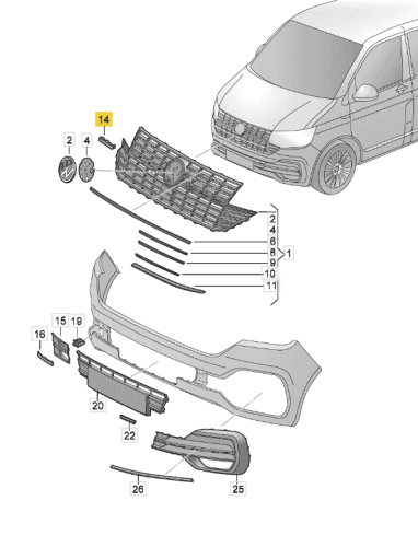 Znaczek emblemat 4motion w atrapie grillu przednim VW T6.1