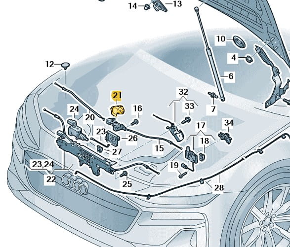 Dźwignia rączka zwalniania otwierania maski przedniej VW Golf VIII 8 Audi A6 C9