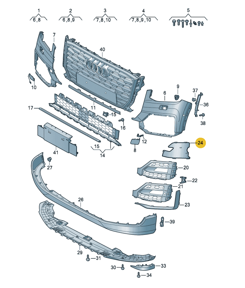 LEWA zaślepka osłona tylnej części kratki zderzaka przedniego Audi Q2 2016-2020