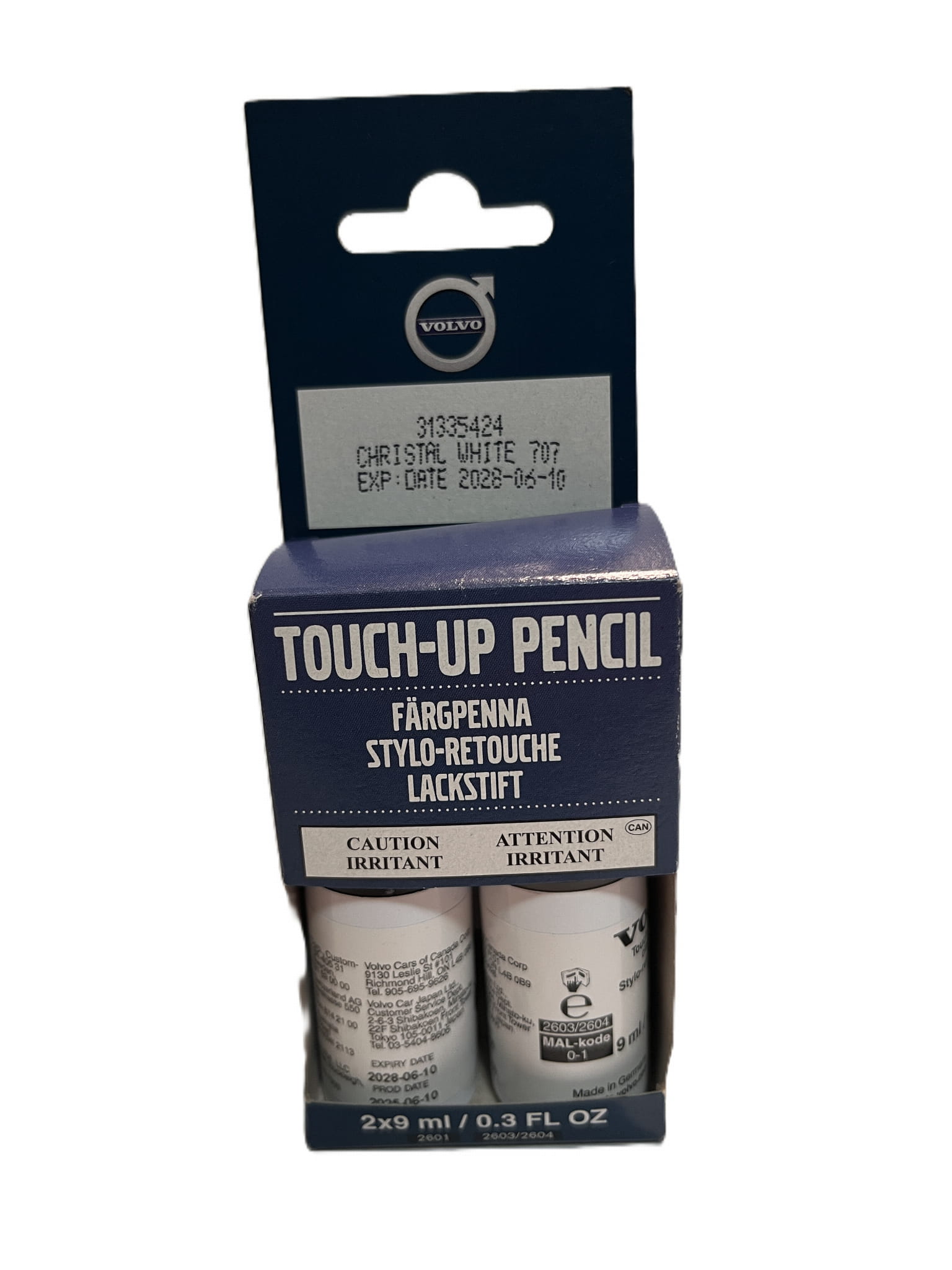Oryginalna zaprawka lakiernicza Volvo (numer OE: 31335424) w kolorze Christal White 707. Idealne akcesorium do samochodu na szybkie i precyzyjne usuwanie drobnych uszkodzeń lakieru lub rys. Ten sztyft to perfekcyjne narzędzie do utrzymania oryginalnego wyglądu karoserii Twojego Volvo. Zapewnia dokładne krycie i dopasowanie barwy. Odkryj wysoką jakość i trwałość oryginalnej chemii samochodowej marki Volvo.