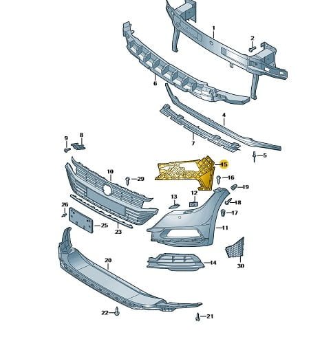 Lewy ślizg wewnętrzny zderzaka przedniego VW Arteon 2017-07/2020