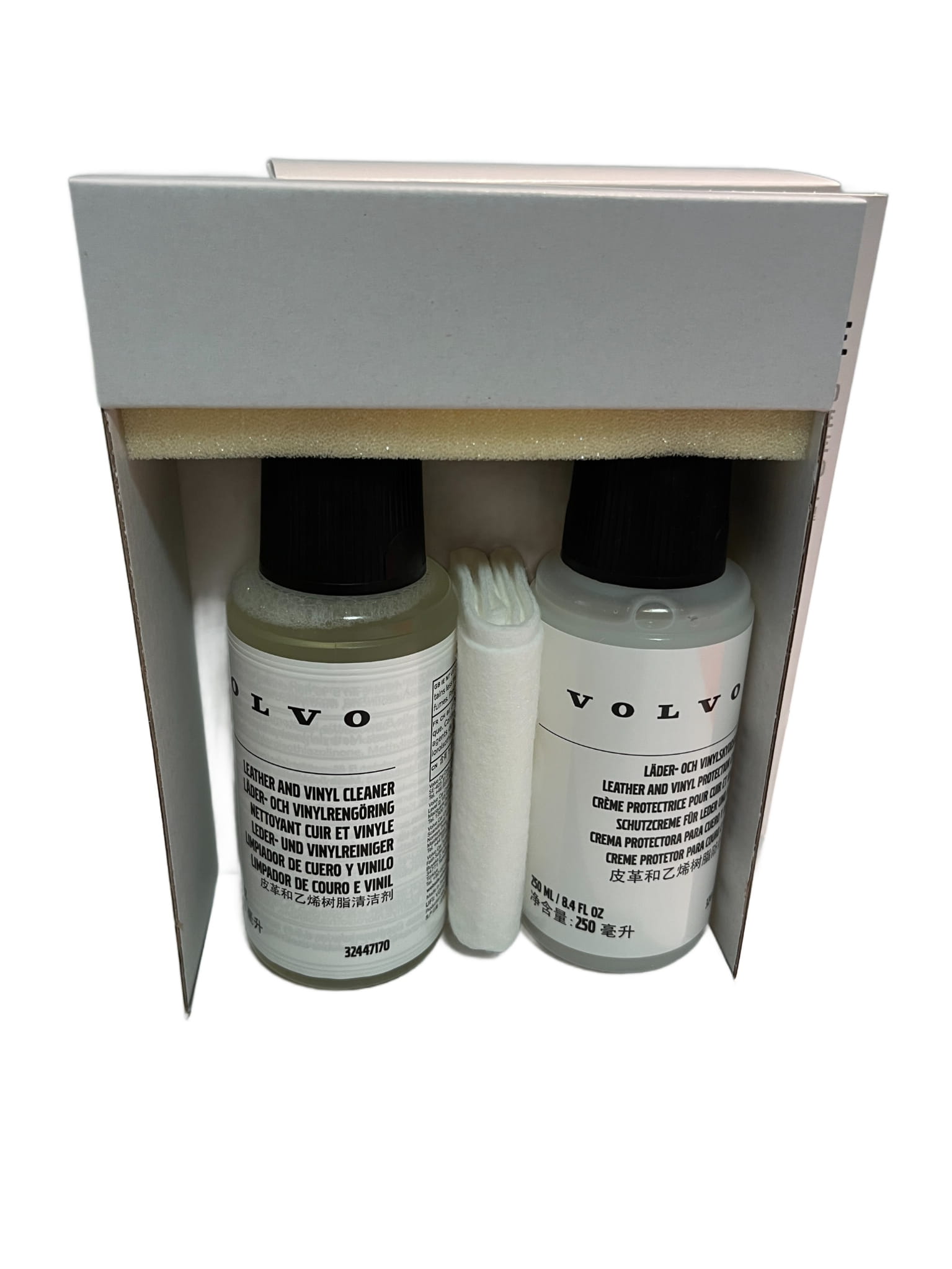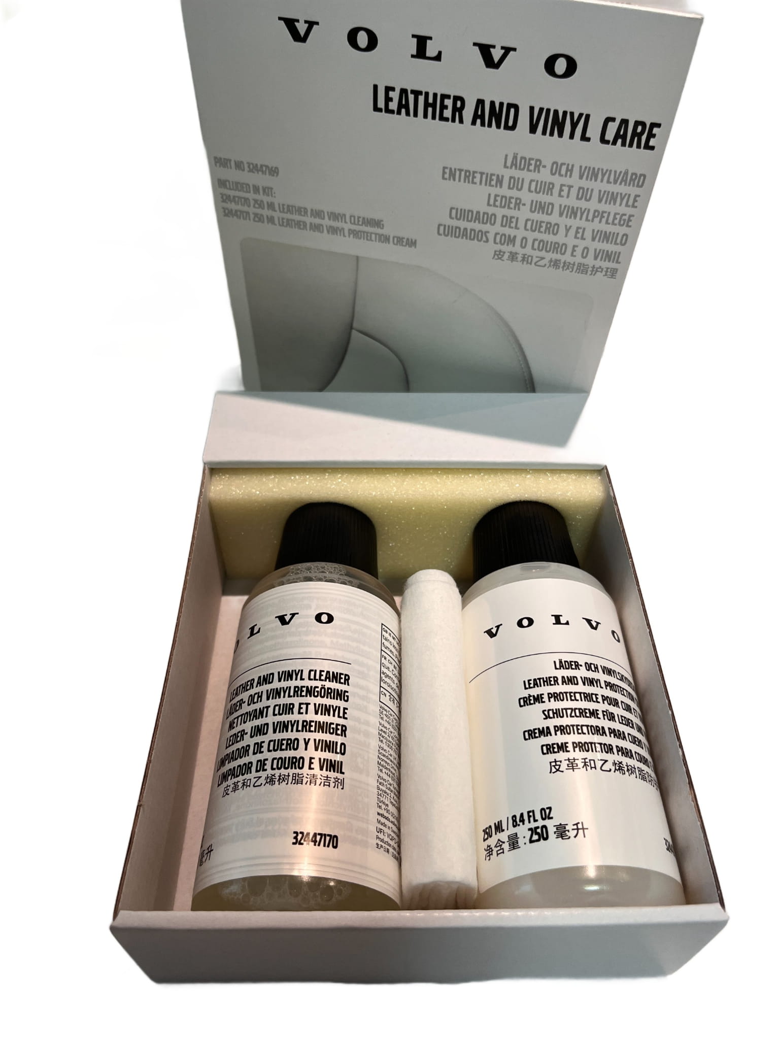 Stworzony, aby skóra w Twoim samochodzie zachowała swoją elastyczność, pierwotny wygląd i odporność na zużycie, zestaw ten jest gwarancją oryginalnej jakości Volvo OE (Original Equipment).