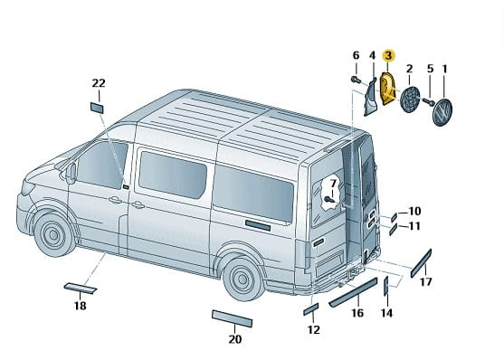 PRAWA Ramka mocowanie uchwytu emblematu w drzwiach tylnych VW Crafter II 2016-