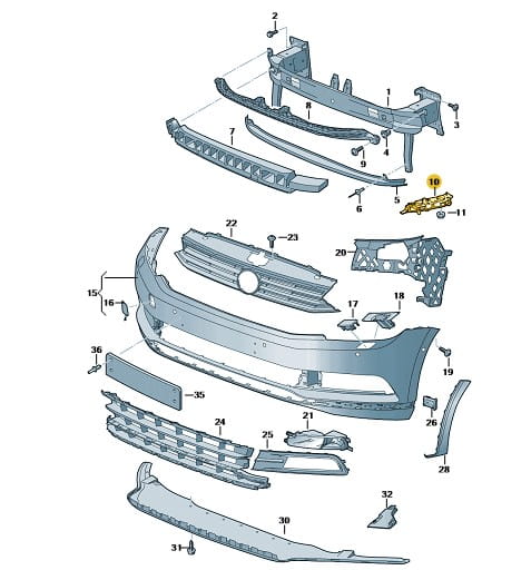 PRAWY Ślizg uchwyt zderzaka przedniego Volkswagen Passat B8 2015-2019