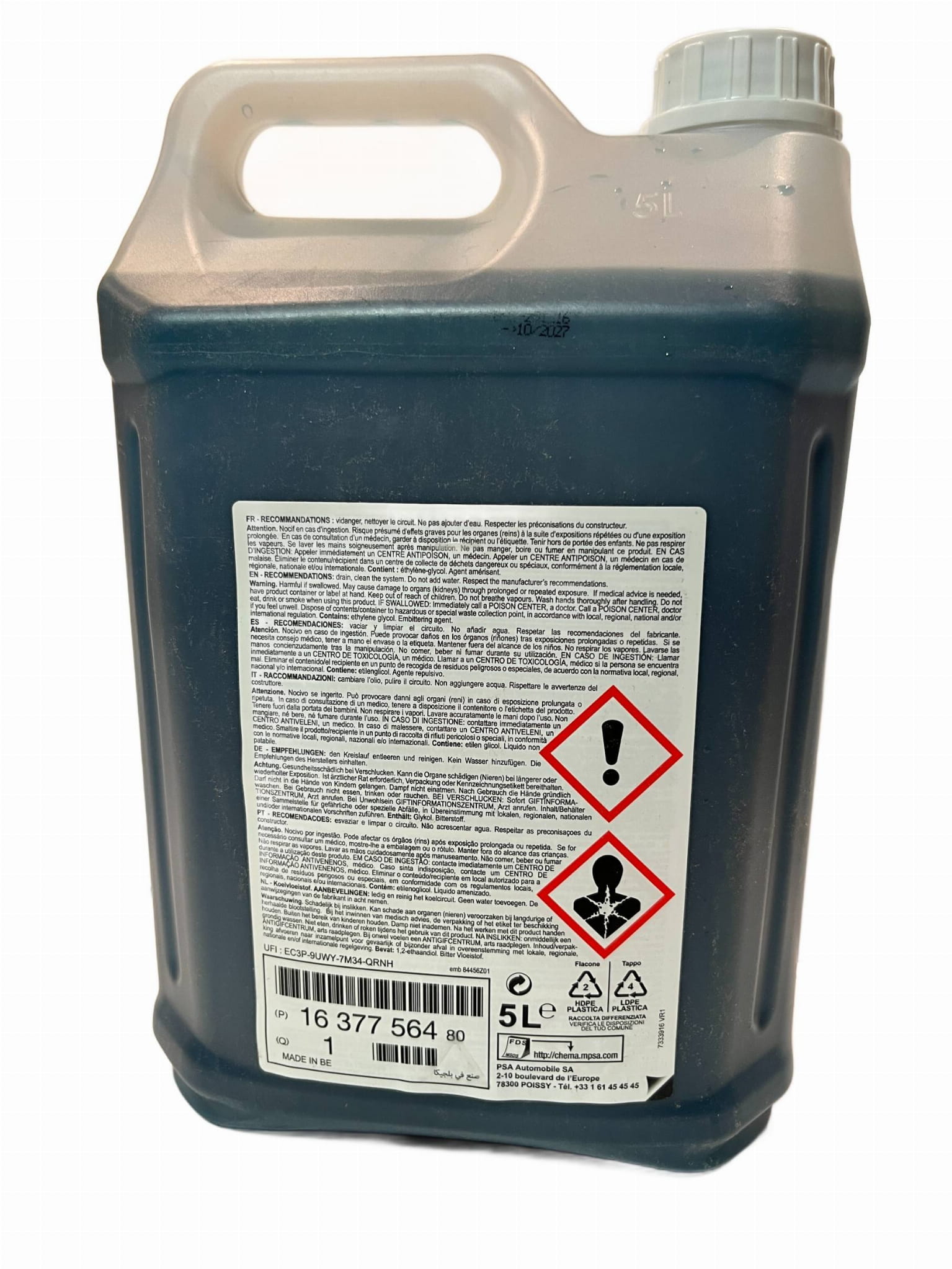 Płyn chłodzący o numerze katalogowym 1637756480 to oryginalny środek przeznaczony do układów chłodzenia w pojazdach marek Peugeot i Citroën. Jest to gotowy do użycia płyn na bazie glikolu monoetylenowego (MEG), który skutecznie chroni silnik przed przegrzewaniem, korozją oraz osadzaniem się kamienia. Jego formuła została opracowana z myślą o nowoczesnych jednostkach napędowych, zapewniając optymalną temperaturę pracy oraz długotrwałą ochronę układu chłodzenia.