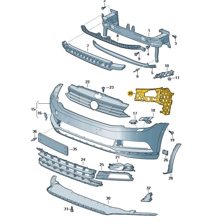 Ślizg wspornik wewnętrzny zderzaka przedniego PRAWY| VW Passat B8 R-line 2015-08/07/2019