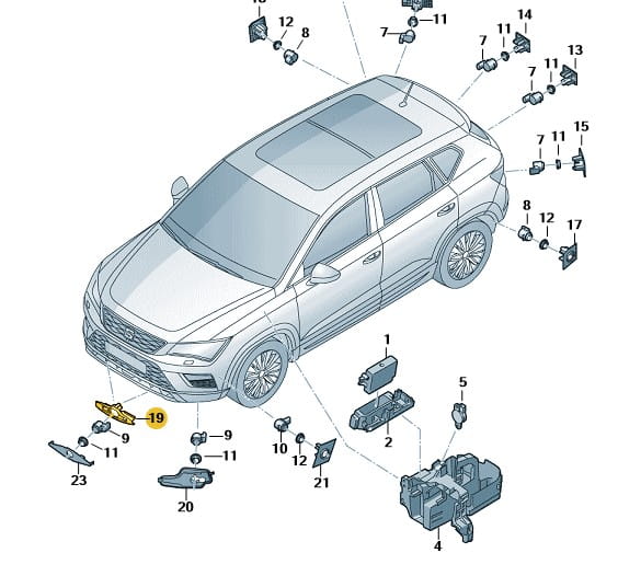 Uchwyt czujnik parkowania PDC przód lewy środkowy SEAT Ateca 2016-2020