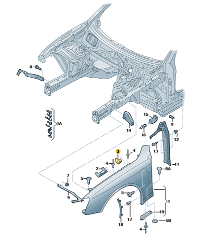 - 8K0821470C - tylna część błotnika prawego