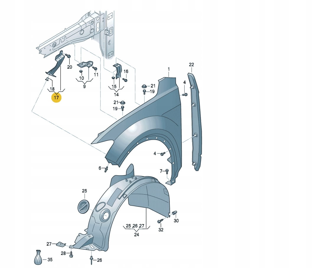 Wspornik uchwyt LEWY błotnika przedniego VW T-Roc I | T-Roc Cabrio