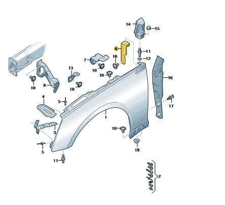 Wspornik uchwyt tylny błotnika przedniego lewego Audi A5 2016-2025 8W6821433