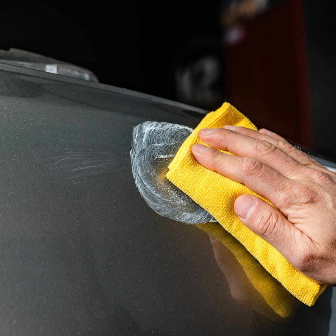 Wykończenie: Zetrzyj pozostałości pasty czystą, miękką mikrofibrą, aby odsłonić gładką, wyrównaną powierzchnię.