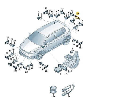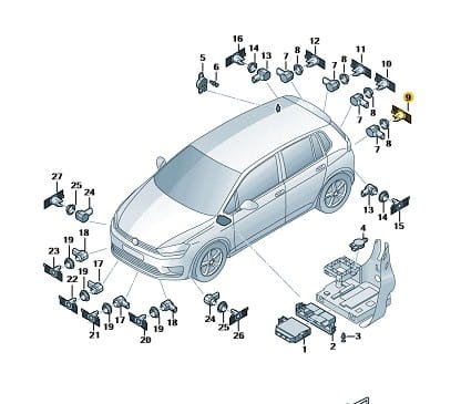 Uchwyt mocowanie czujnik parkowania PDC tył środkowy lewy VW Golf Sportsvan