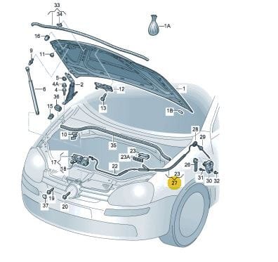 Linka otwierania maski przedniej część tylna VW Golf V Jetta