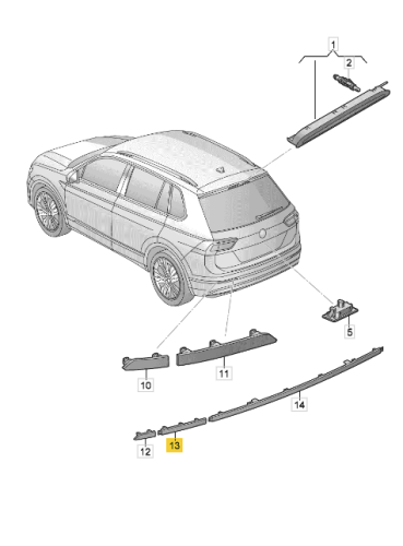 Odblask światło odblaskowe środkowe prawy VW Tiguan II 2020-2025 Allspace 2021-2025