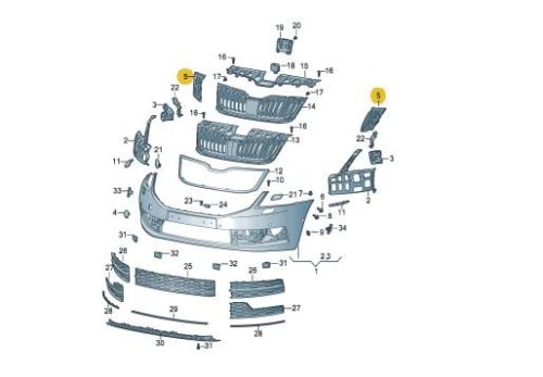 Front bumper bracket support guide SKODA OCTAVIA III 2013-2017